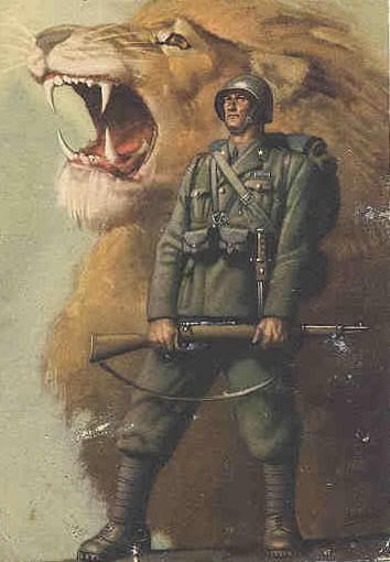 Il fascista è il sergente del gigantesco esercito della nostra civiltà profondamente malata e altamente industrializzata. Non si può far vedere impunemente all’uomo comune il grande tam tam dell’alta politica: il piccolo sergente ha superato il generale imperialista in tutto: nella musica di marcia, nel passo dell’oca, nel comandare e nell’obbedire, nella mortale paura di dover pensare, nella diplomazia, nella strategia e nella tattica, nelle divise e nelle parate, nelle decorazioni e nelle medaglie.